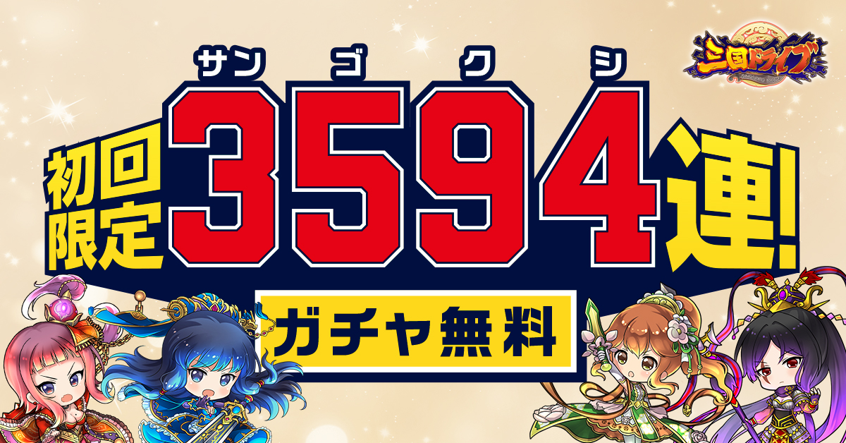 【今だけ】なんと新規登録で3594連(三国志連)ガチャが無料で引けるチャンスです!